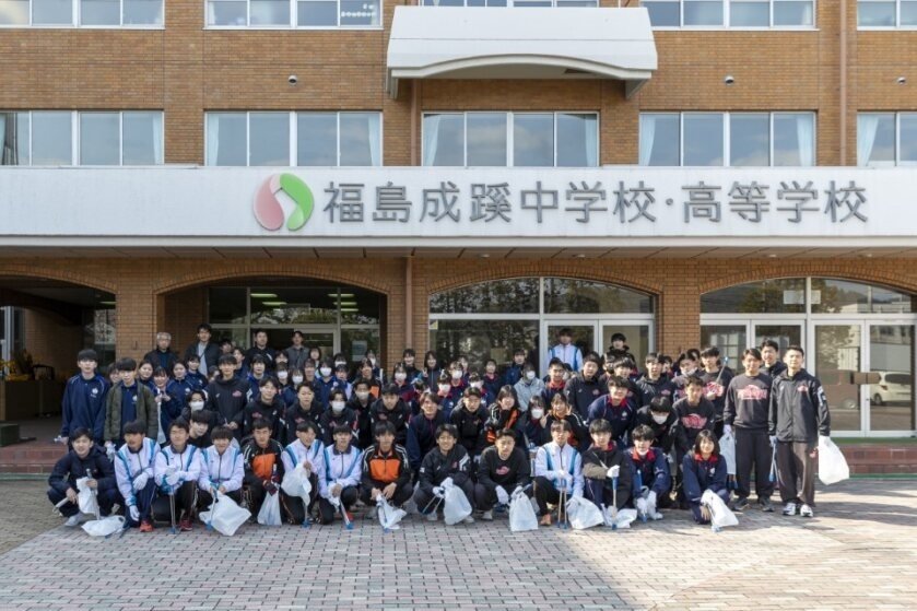 出発前に、保健体育科の高津先生から、東日本大震災後、いろんな所属を超えて、成蹊生が一つになれるように「Team SeikeiTシャツ」を作り始め、売上の一部を13年間、熊本などの被災地に寄付していることを教えていただき、生徒たちは協力して活動することを意義を感じながら清掃活動をしました。