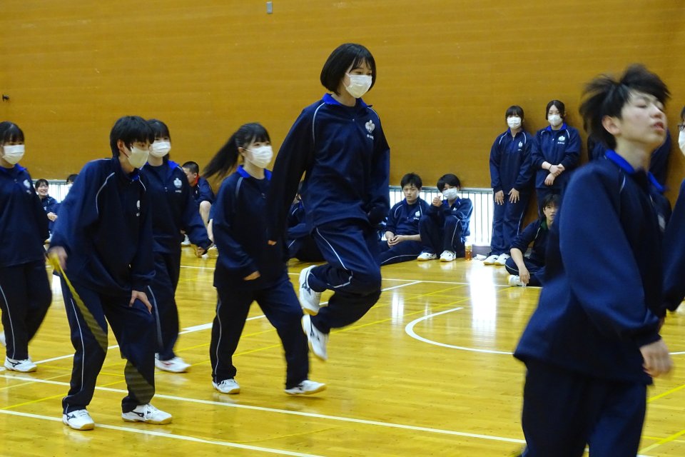 先輩方から、文理選抜コースの学校生活や部活動についてのプレゼンを行ったあと、全員によるレクリエーションが行われました。
