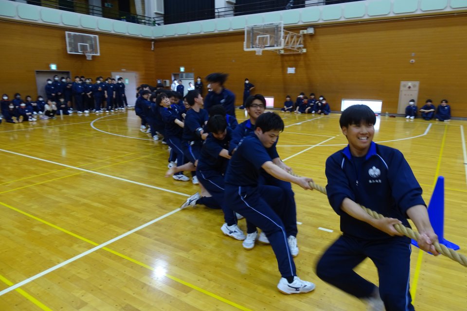 次は「綱引き」です。こちらは学年対抗でしたので、2・3年生は試合前には円陣を組んで雄叫びを上げるなど、たいへんな盛り上がりを見せます。対戦もやはり上級生が良い結果を出していたようです。