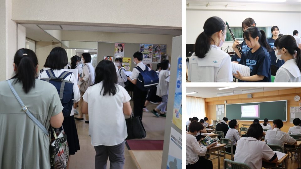 「オープンスクール」は1時間目が各コースの説明を生徒が行い、2時間目は部活動体験や校舎見学などのプログラムで午前と午後と行いました。暑い中、たくさんの中学生や中学生の保護者の方においでいただきました。説明した高校生、おもてなしをした高校生をご覧いただけば、本校の教育がどのようなものなのか、おわかりいただけたのではないでしょうか。