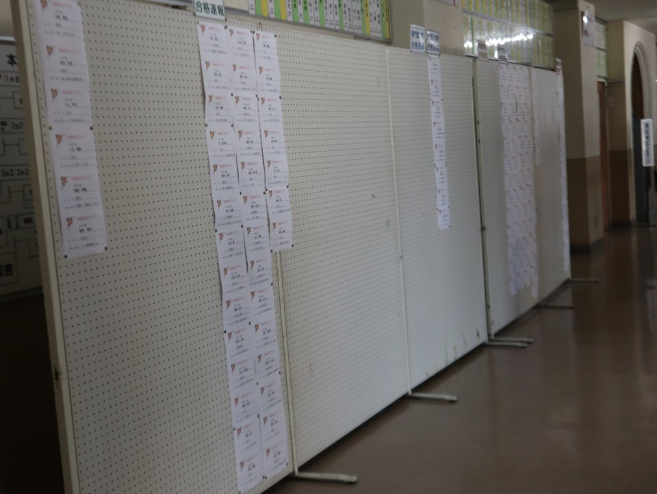 11月28日(水)。昇降口を入ったところにある合格を知らせるボード。合格者の名前が増えてきています。