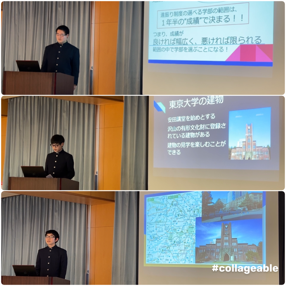 12月12日(木)に中学2年生が東京大学についてのプレゼンテーションをクラス内でおこないました。