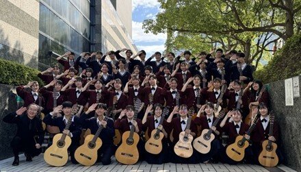 本校のギタークラブは、複数のギターを組み合わせて合奏するスタイルで、30年連続で「全国ギターコンクール」に出場中。今年は昨年に引き続き「金賞」を受賞しました。