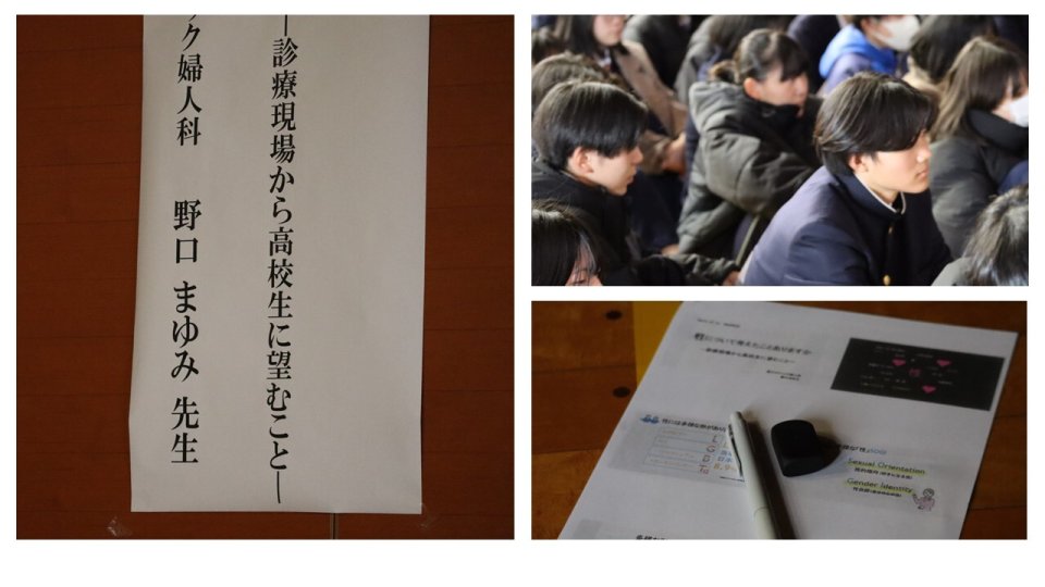 2月6日(木)。高校で講演会が行われました。特別進学・文理選抜・普通コース1年生対象の「性教育講演会」。講師に西口クリニック婦人科院長野口まゆみ先生をお迎えしました。