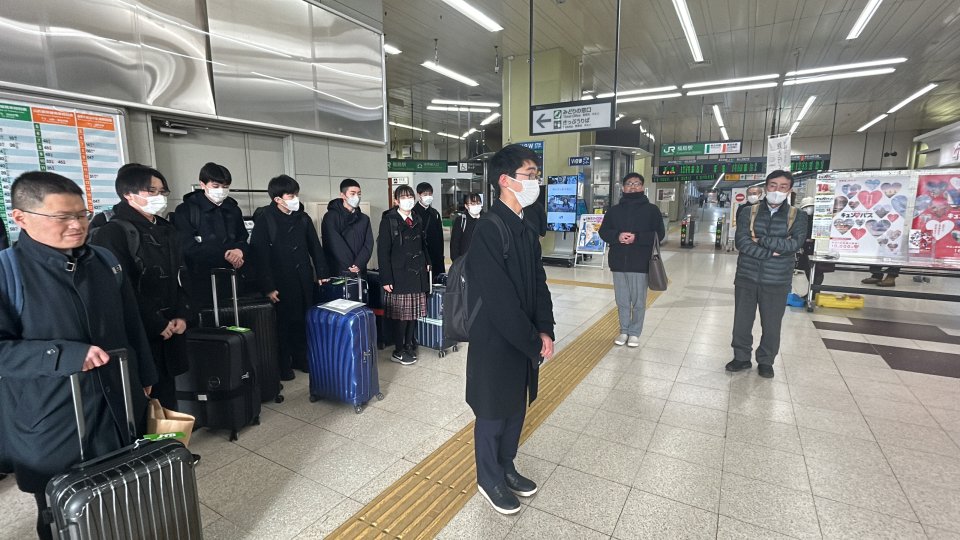 16時、福島駅に集合し新幹線で東京へ向かいます。校長先生や中学校の先生、そして保護者の方々が見送りにやってきました。