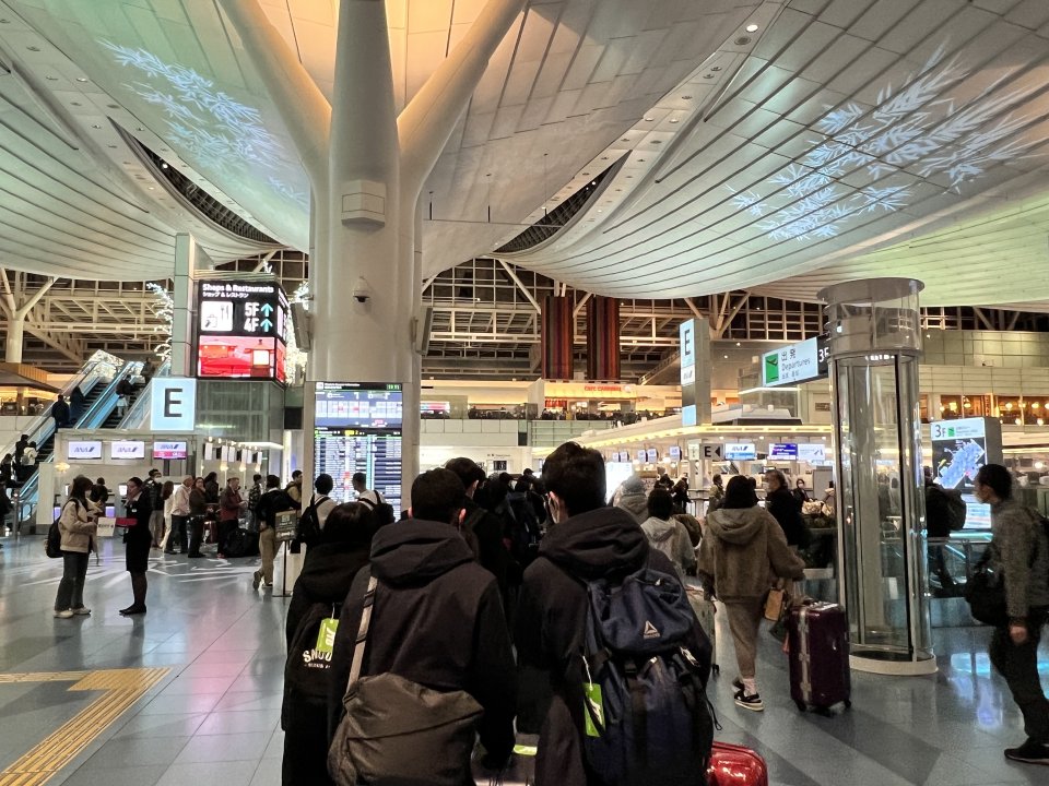 羽田空港に到着し、諸手続きを終え、いざカナダへ!