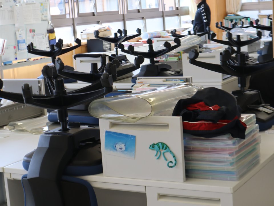 もちろん職員室の通常清掃は行われていますが、机と机の間や引き出しの下の部分(つまり見えないところ)はなかなか手が届きません。だからこの机移動の際に掃除を行うことになるわけです。