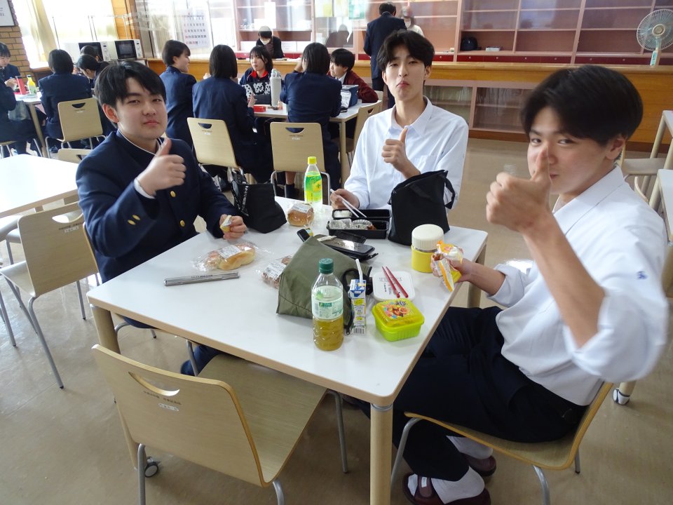 入学して2週間余り。まだまだ先輩に気を使ったり、遠慮したりする気持ちがある時期だと思うのですが、そんなことお構いなし。テーブルを並べて、購買でパンを買って、自動販売機でジュースを買って、お弁当も広げて、本当に楽しそうに昼食をとっています。お誕生日をお祝いする歌をうたったり、校歌をうたったりとこちらが笑っちゃうくらいです。
