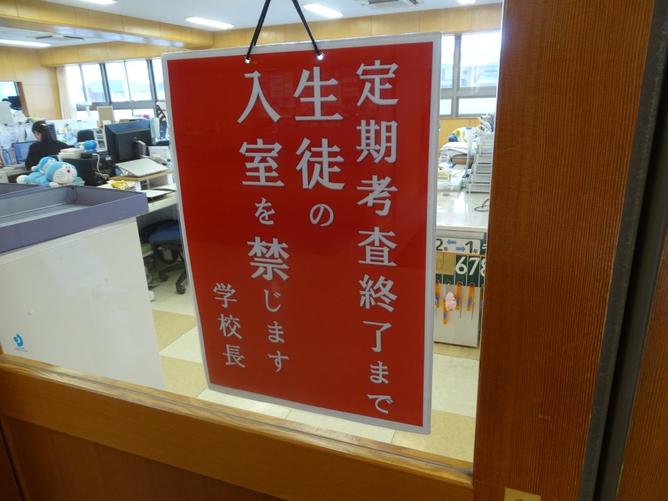本校の定期考査は、今までは火曜日から始まるのが通例でしたが、今回は月曜スタートです。週末をはさみましたので、生徒が寝ぼけて遅れてくるのではないか、連絡ごとを忘れているのではないかと、先生方も気が気ではありません(笑)。