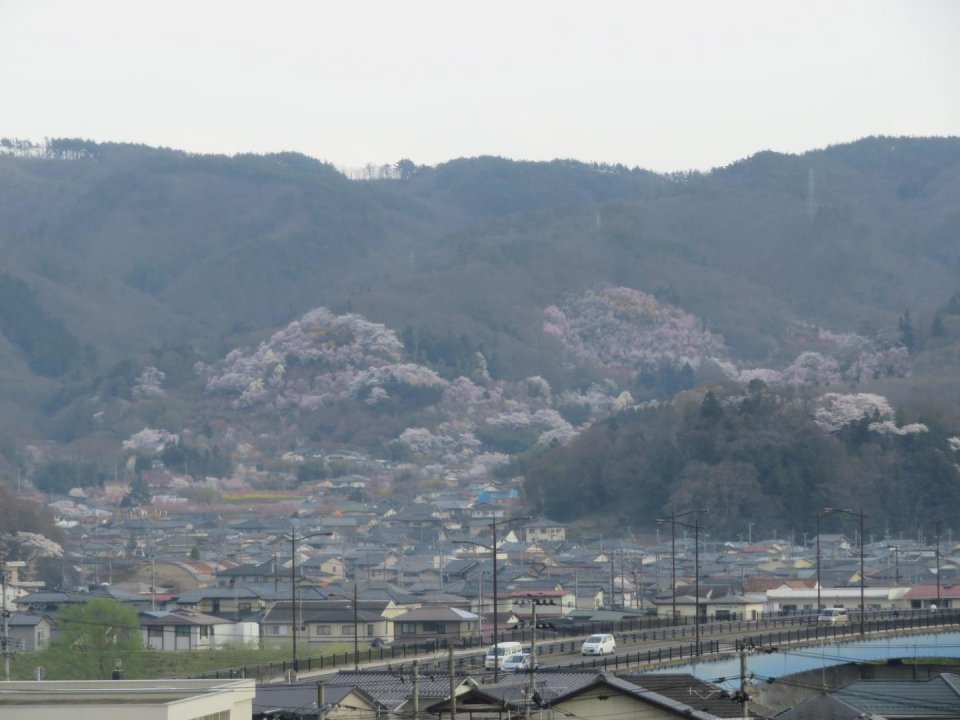 花見山」の美しい遠景を見ることができます。