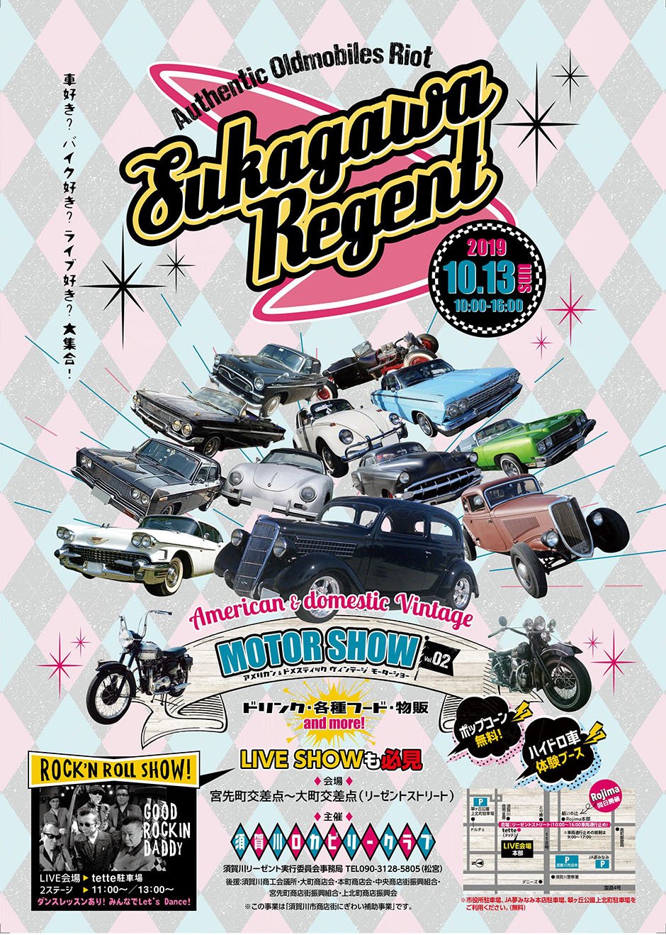 お問い合わせ | 主催:須賀川ロカビリークラブ 須賀川リーゼント実行委員会 問い合わせは実行委員会事務局(℡090―3128―5805)まで。 |