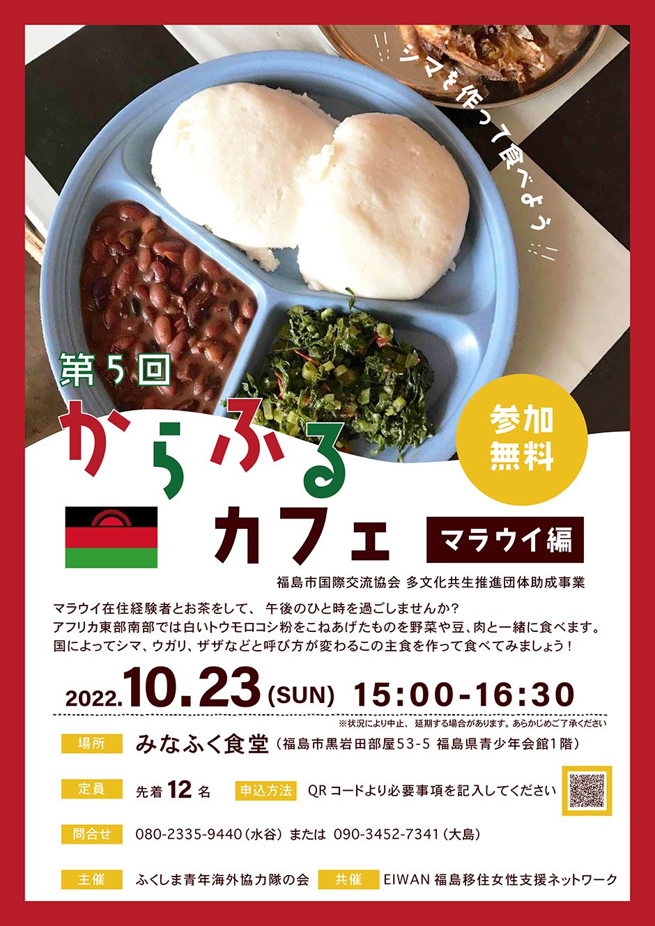 お問い合わせ | 主催:FOCA ふくしま青年海外協力隊の会 共催:EIWAN 福島移住女性支援ネットワーク 問合せ:foca2021matsuri@gmail.com |