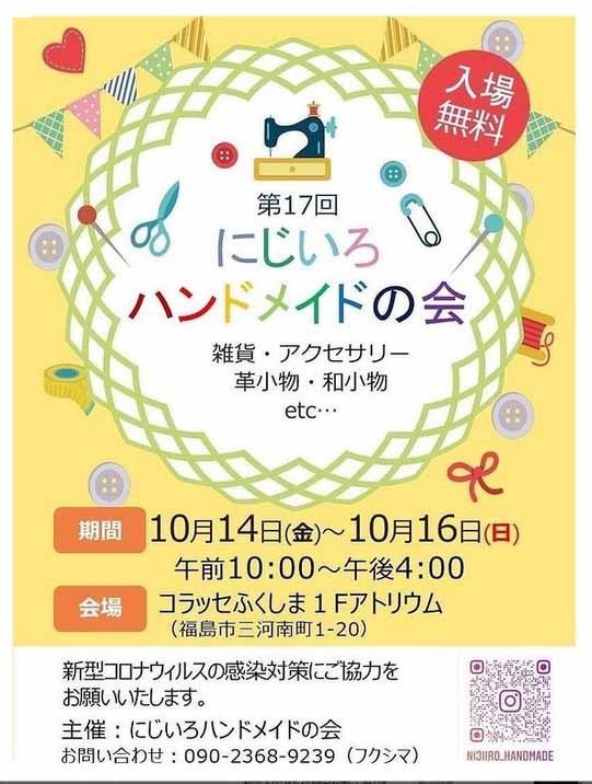 お問い合わせ | 主催:にじいろハンドメイドの会 問い合せ:024-576-6657(福嶋) コラッセふくしま 960-8053 福島県福島市三河南町1−20 024-525-4098 |
