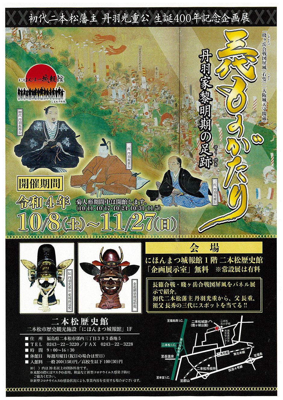 お問い合わせ | 二本松歴史館「企画展示室」 二本松市歴史観光施設「にほんまつ城報館」1階 964-0904 二本松市郭内三丁目303番地5 0243-22-6630 |
