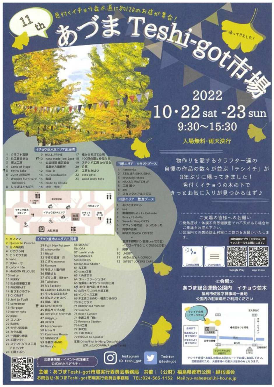 お問い合わせ | あづまTeshi-got市場実行委員会事務局 TEL 024-563-1132 主催 あづまTeshi‐got市場実行委員会 共催 (公財)福島県都市公園・緑化協会 |