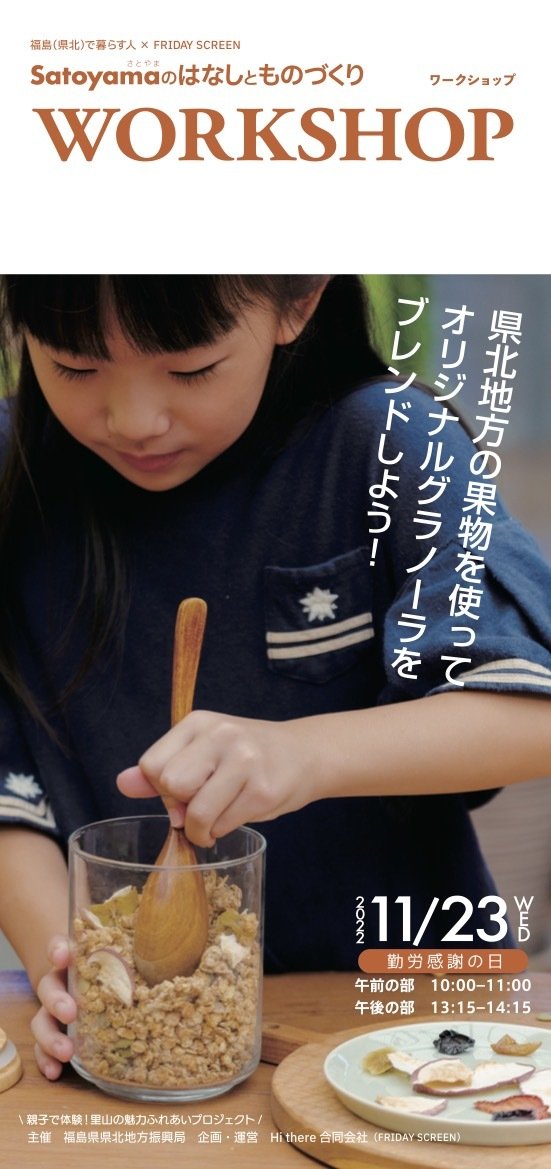 お問い合わせ | ◇主催 福島県県北地方振興局 ◇企画・運営 Hi there 合同会社(FRIDAY SCREEN) ◇グラノーラレシピ開発 すくもたかなこ ◇お問い合わせ Hi there 合同会社(FRIDAY SCREEN) MAIL:we(at)friday-screen.com ※(at)を@に変えてお送りください。 TEL:090-9308-9461(担当:鈴木)※平日9時〜17時 ※お申し込み後2日以内に返信がない場合はお手数ではございますが、上記までご連絡ください。 |
