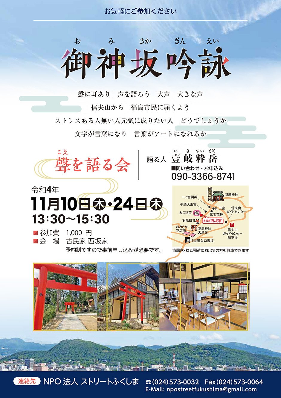 お問い合わせ | NPO法人 ストリートふくしま TEL 024-573-0032 FAX 024-573-0064 E-mail : npostreetfukushima@gmail.com |