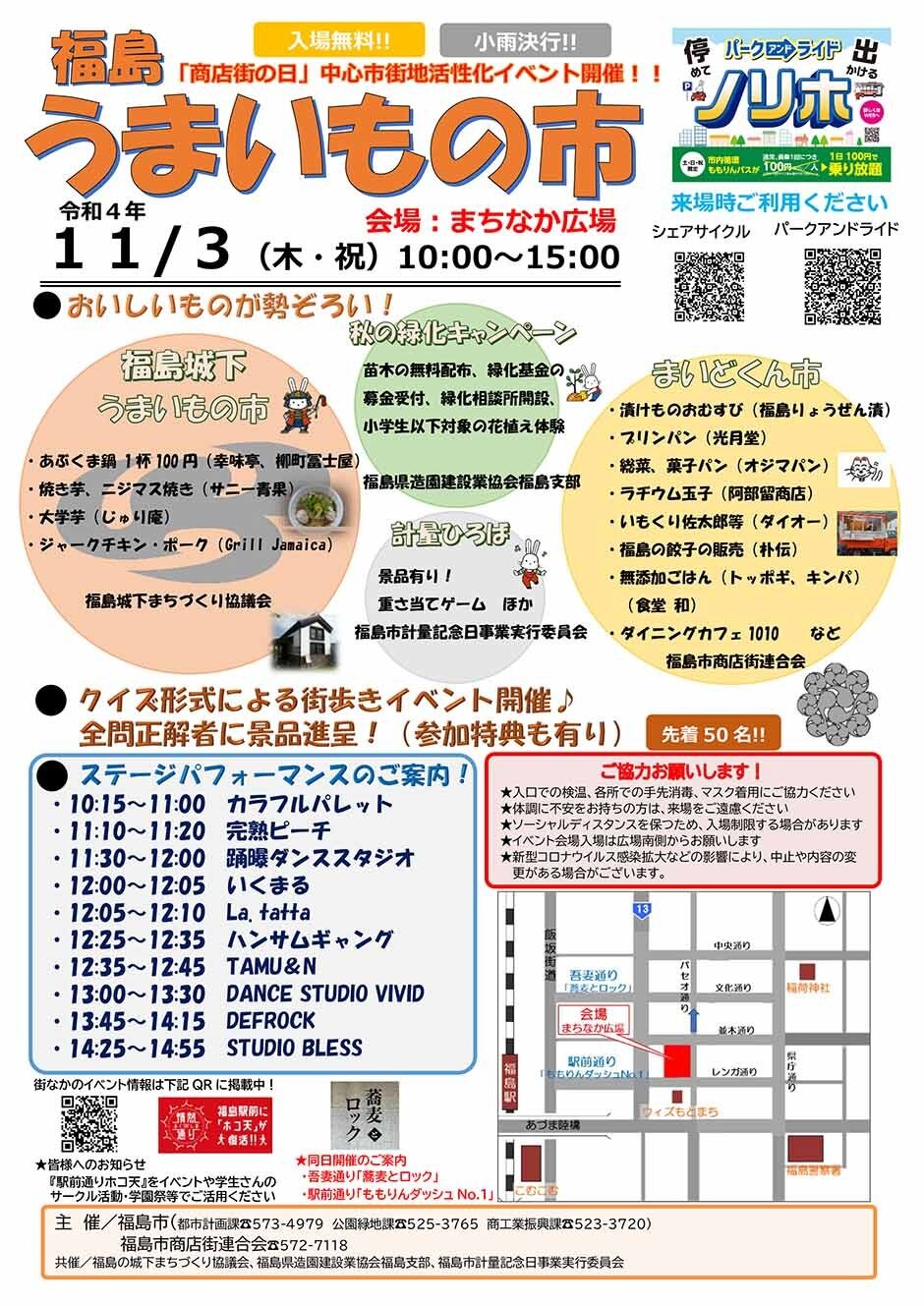 お問い合わせ | まちなか広場 〒960-8035 福島県福島市本町1 主催/福島市・福島市商店街連合会 |
