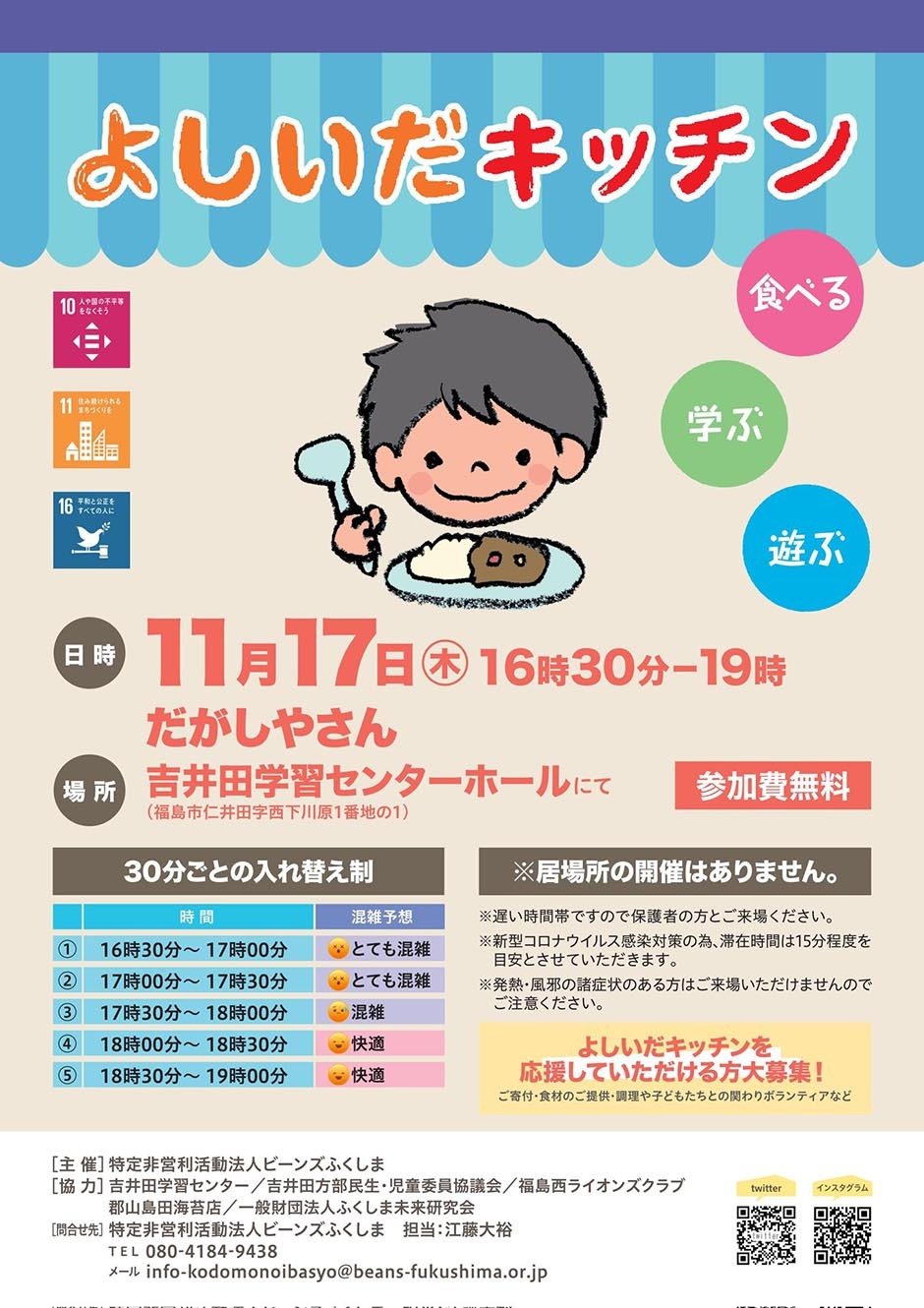 お問い合わせ | 主催/特定非営利活動法人ビーンズふくしま TEL 080-4184-9438 info-kodomonoibasyo@beans-fukushima.or.jp |