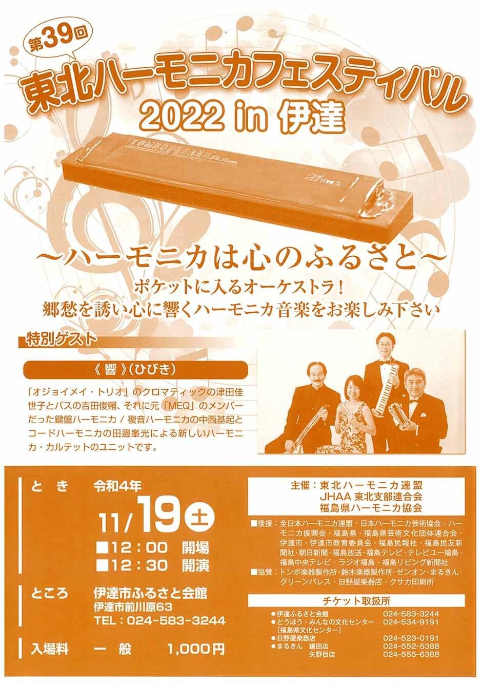 お問い合わせ | お問合せ 福島県ハーモニカ協会事務局(090)7064-6502 伊達市ふるさと会館MDDホール 〒960-0403 福島県伊達市前川原63 024-583-3244 |