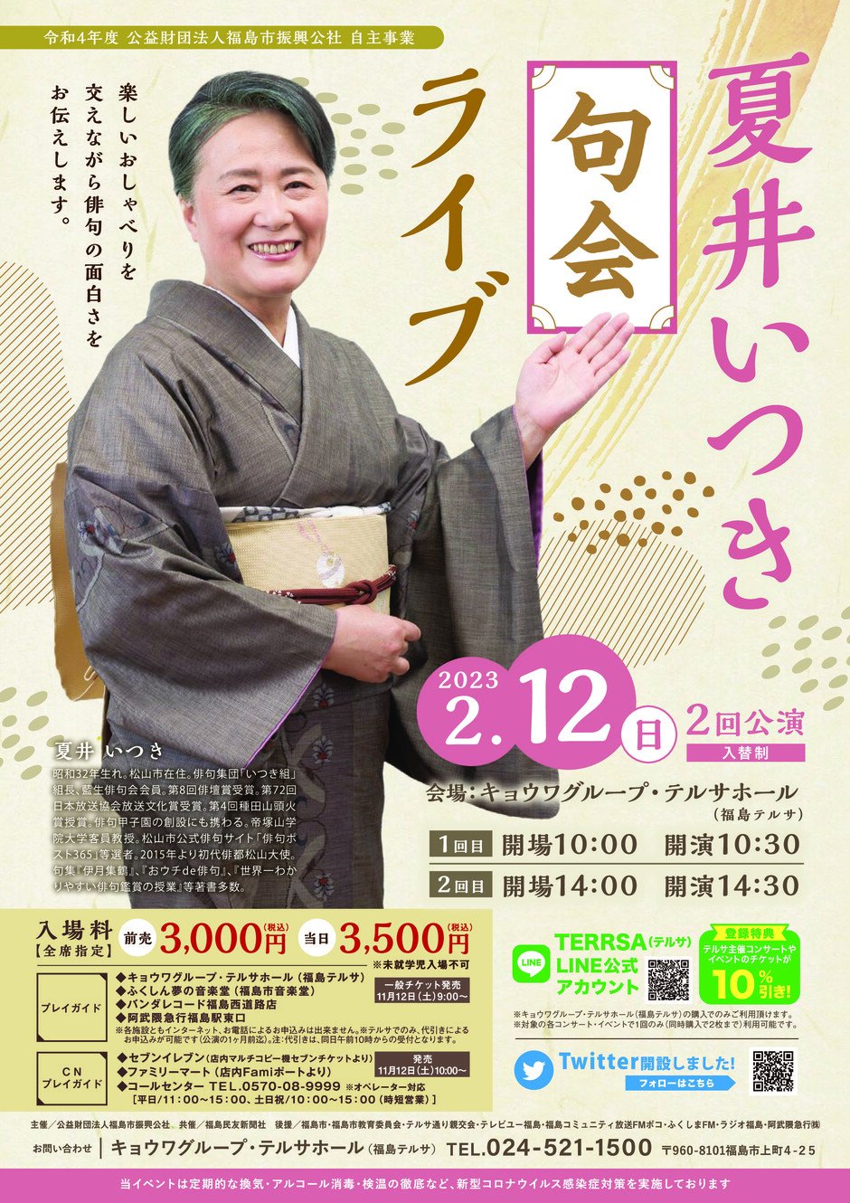 お問い合わせ | 主催:公益財団法人福島市振興公社 お問合せ:キョウワグループ・テルサホール(福島テルサ)/ 電話:024-521-1500 |