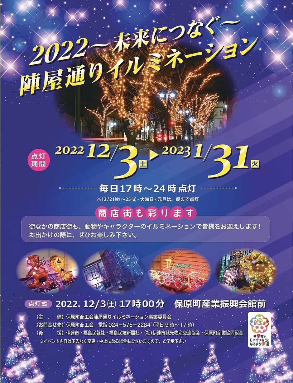 お問い合わせ | 主催/保原町商工会陣屋通りイルミネーション事業委員会 TEL 024-575-2284 |
