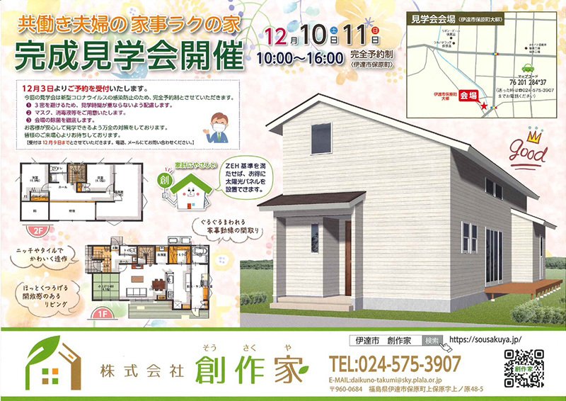 お問い合わせ | 株式会社創作家 960-0684 福島県伊達市保原町上保原字上ノ原48-5 TEL 024-575-3907 |