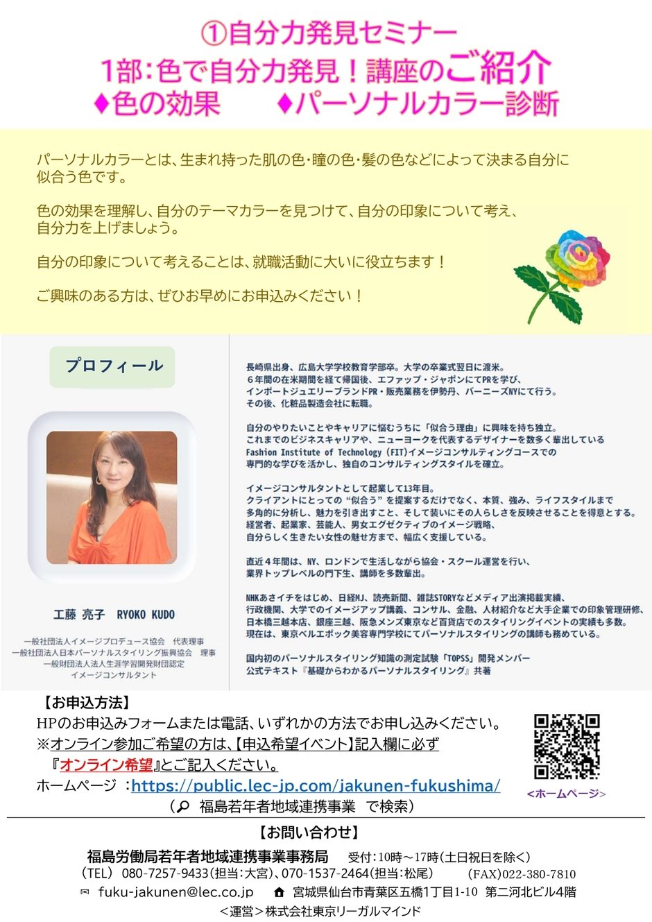 お問い合わせ | 福島若年者地域連携事業事務局 <受託企業> 株式会社東京リーガルマインド 住所:〒980-0022 宮城県仙台市青葉区五橋1丁目1番10号 第二河北ビル4階 Mail:fuku-jakunen@lec.co.jp TEL:080-4913-7824(担当 高橋) 受付:平日10:00~17:00(土日祝は休み) |