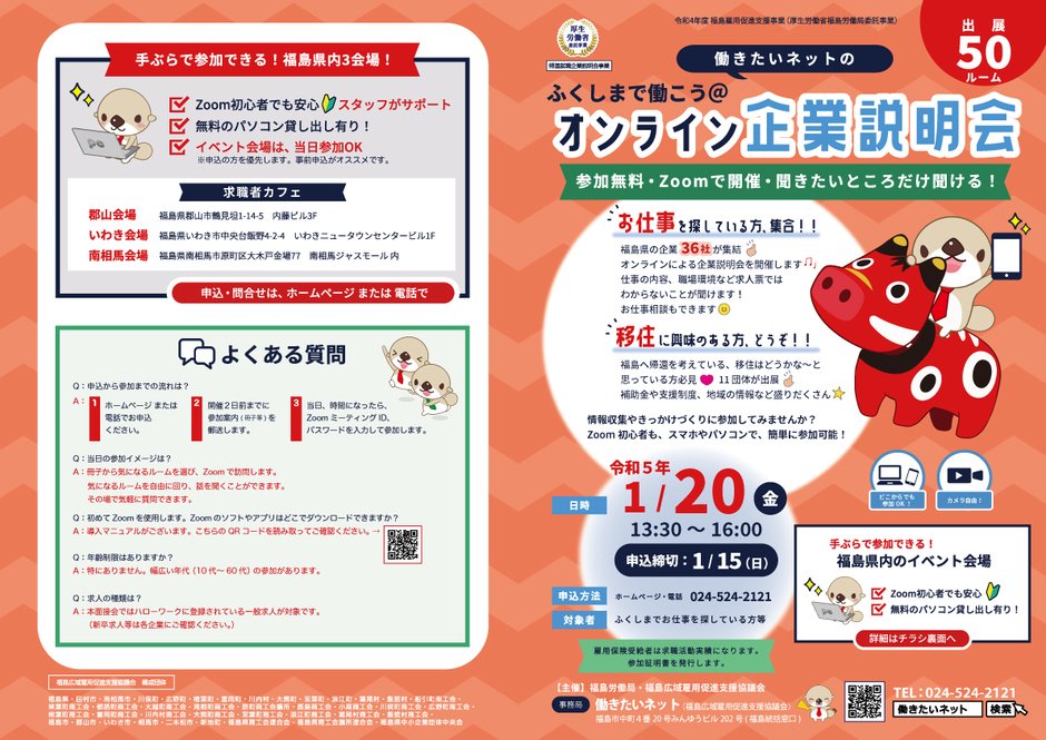 お問い合わせ | 主 催:福島労働局 福島広域雇用促進協議会 連絡先:024-524-2121 |