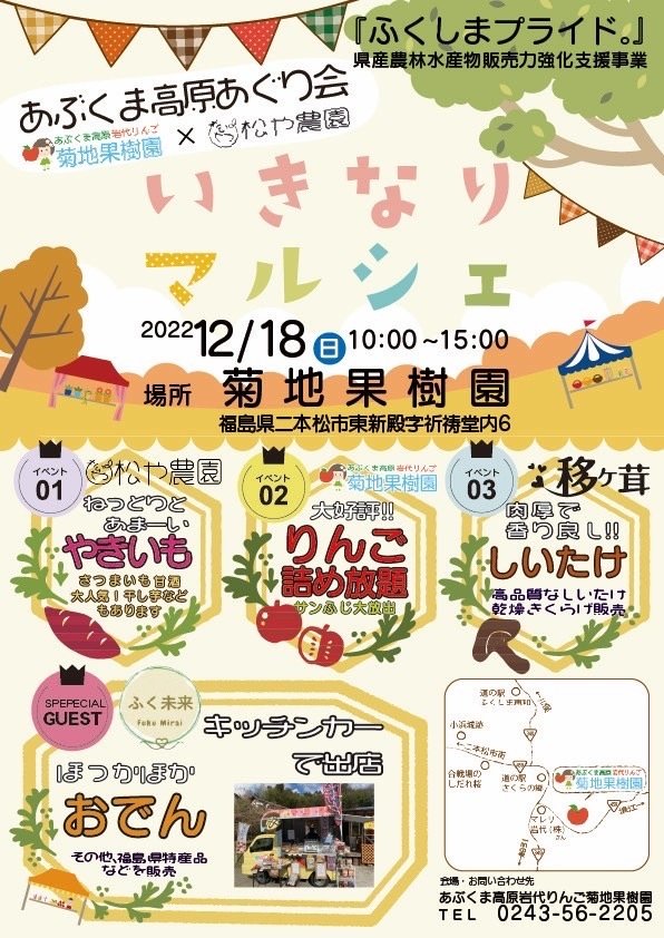お問い合わせ | あぶくま高原あぐり会 代表 あぶくま高原岩代りんご菊地果樹園 0243-56-2205 |
