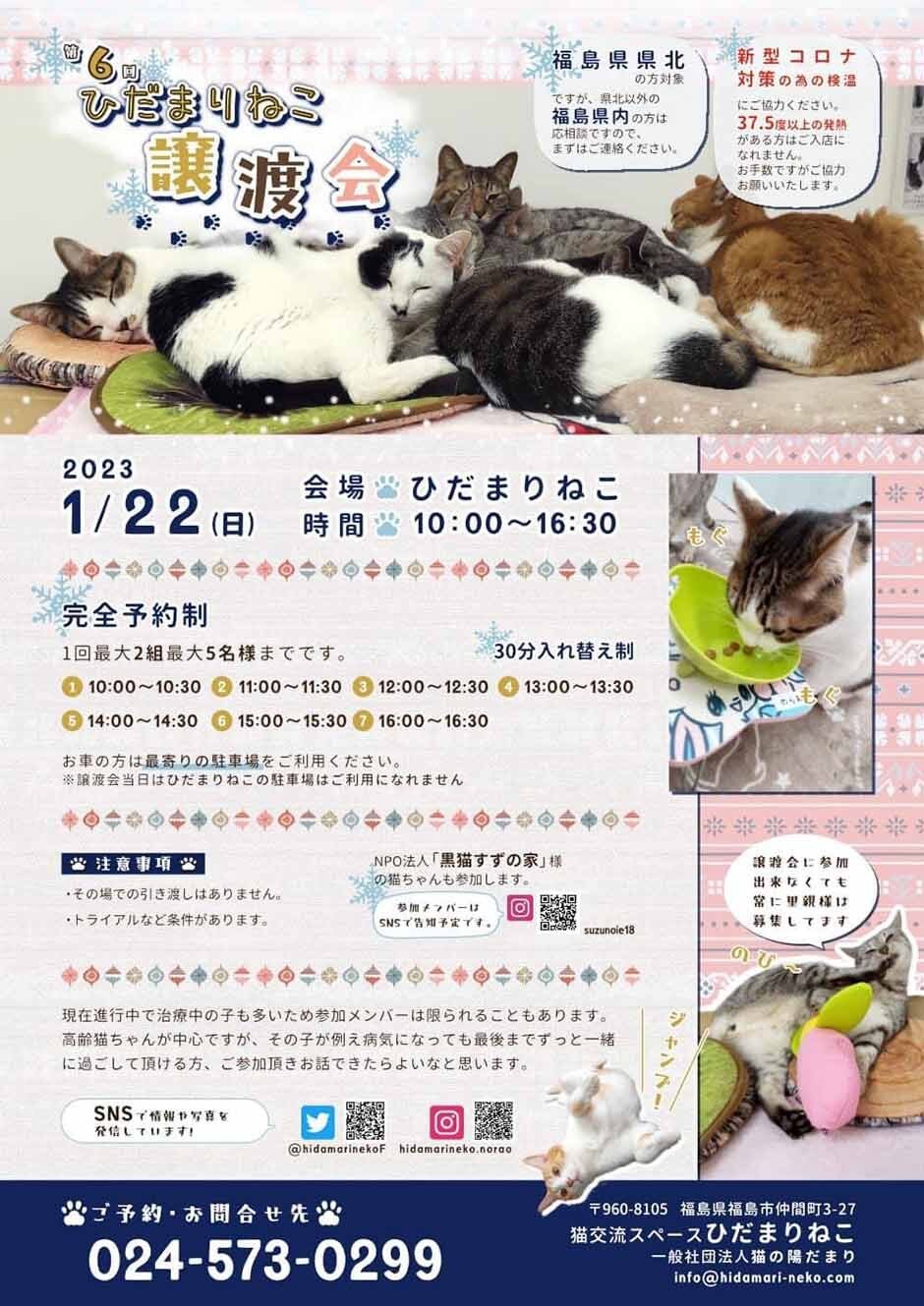 お問い合わせ | 一般社団法人猫の陽だまり 〒960-8105 福島県福島市仲間町3-27 TEL 024-573-0299 メール info@hidamari-neko.com |