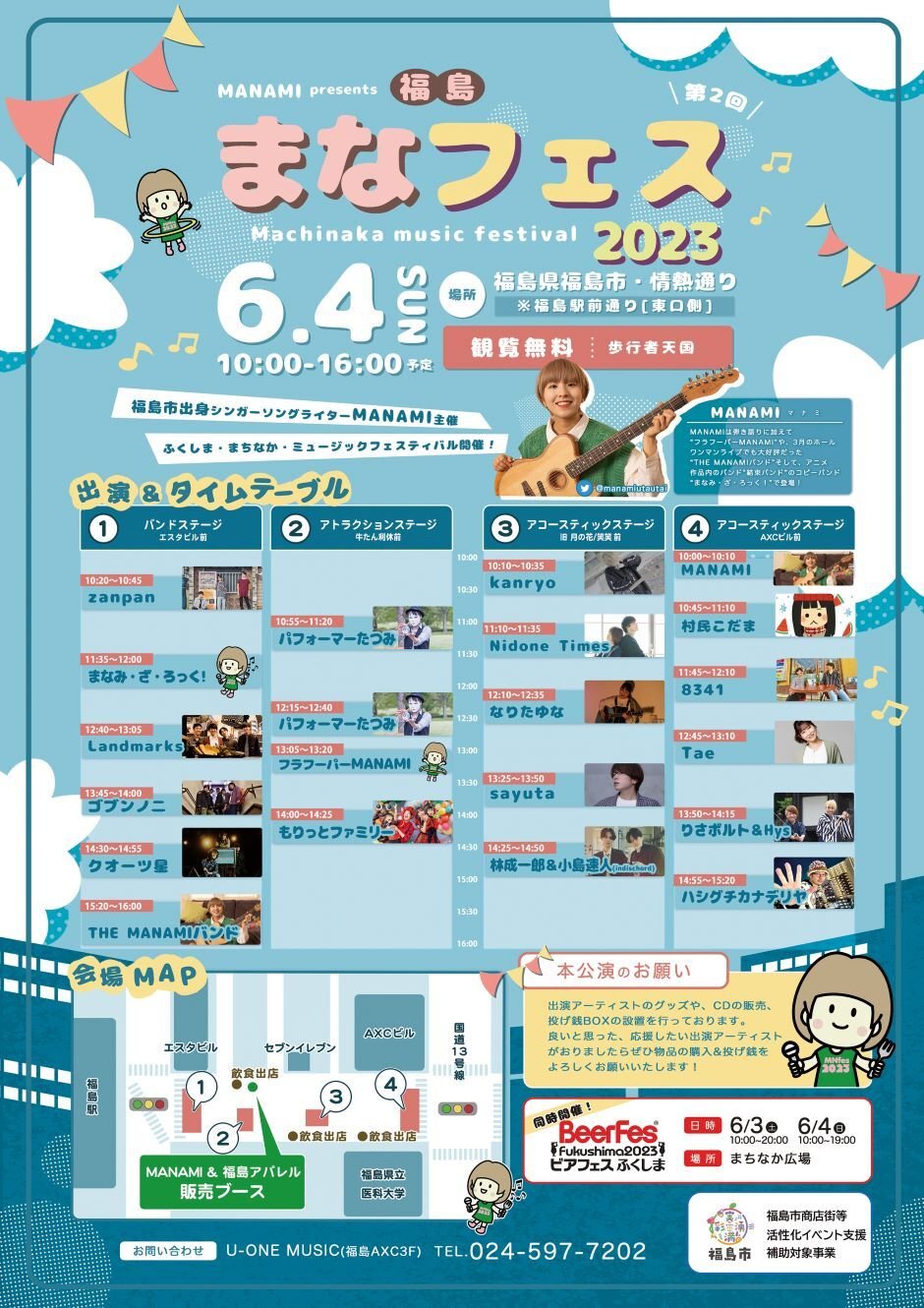 | お問い合わせ | 主催:福島まなフェス実行委員会 お問い合わせ:U-ONE MUSIC 024-597-7202 |