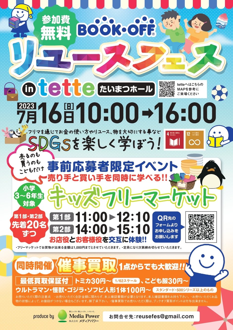 第2回『ブックオフ リユースフェス キッズフリーマーケット in tette たいまつホール』開催概要