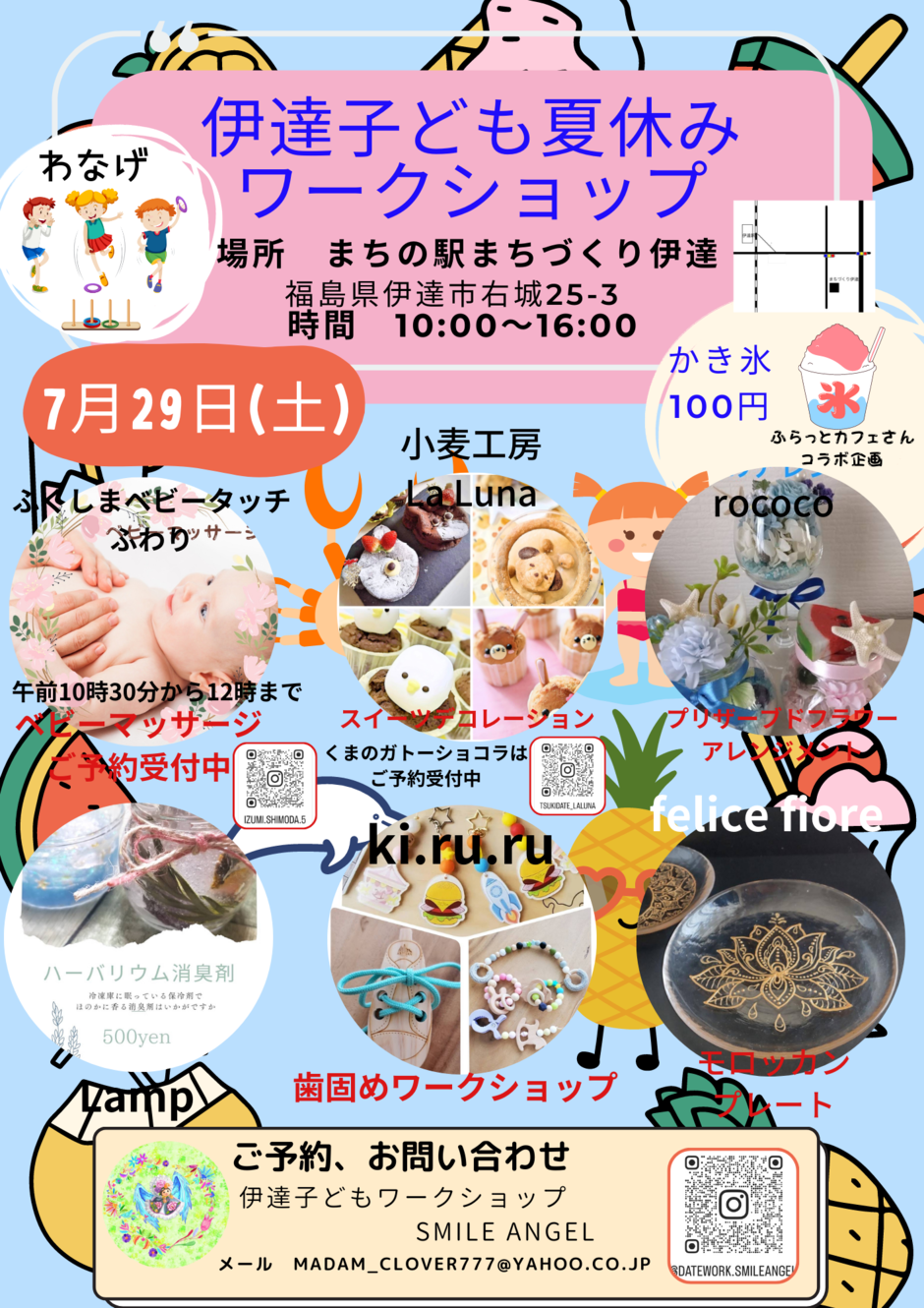 | お問い合わせ | 伊達子どもワークショップSmile Angel メール madam_clover777@yahoo.co.jp |