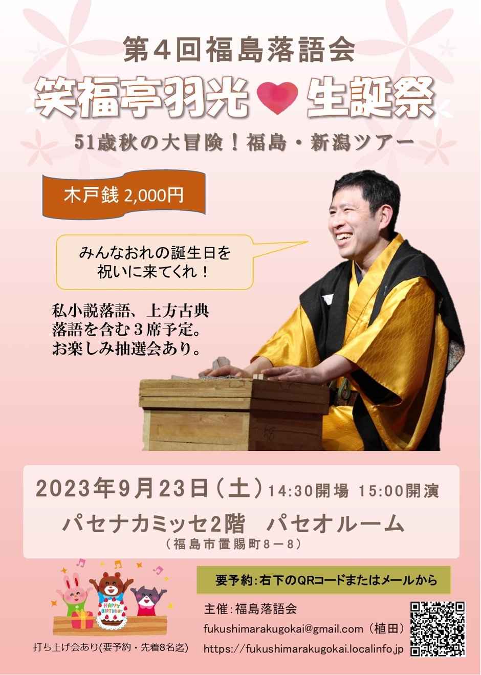 | お問い合わせ | 福島落語会代表・植田 fukushimarakugokai@gmail.com |