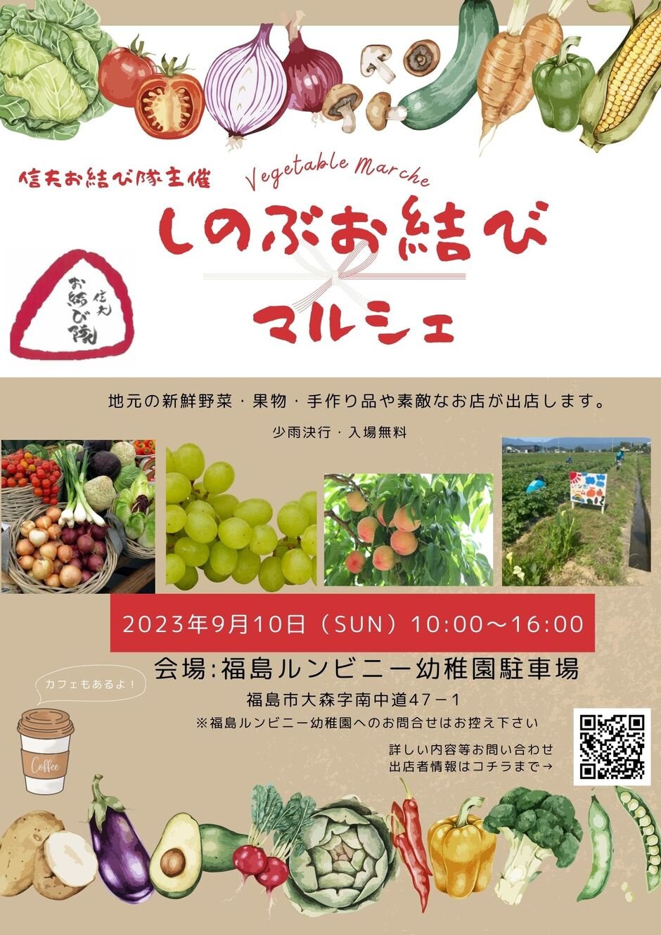 信夫地区での農作物を栽培している方や店舗様を中心としたマルシェを開催します。地域で育てられた農作物を地元の人たちで消費する活動「地産地消」を促進し、生産地近場で販売することはCO2削減にも貢献できます。また消費者にとっても新鮮かつ旬な野菜や果物が生産者から直接購入できることで大きな安心感や親近感へとつながります。このイベントを通じてフードロスの貢献や地域の店舗や生産者と地域を結ぶ機会を作り、農業や地元への興味を持ってもらうきっかけにもなればと思い企画しました。