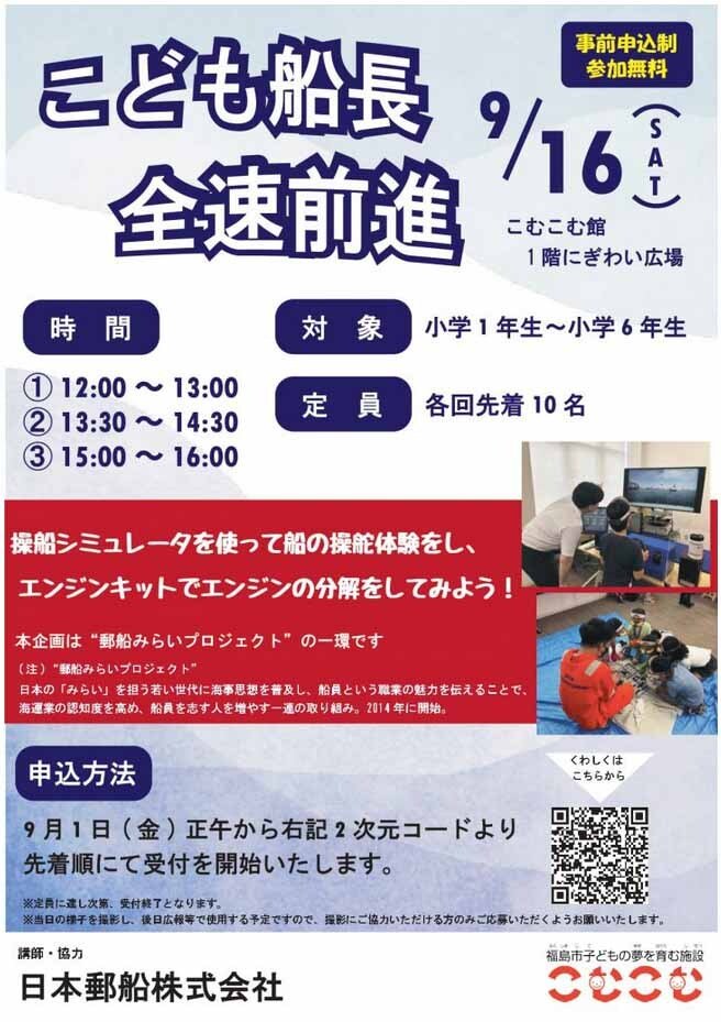 | お問い合わせ | 福島市子どもの夢を育む施設 こむこむ 〒960-8044 福島県福島市早稲町1−1 024-524-3131 |