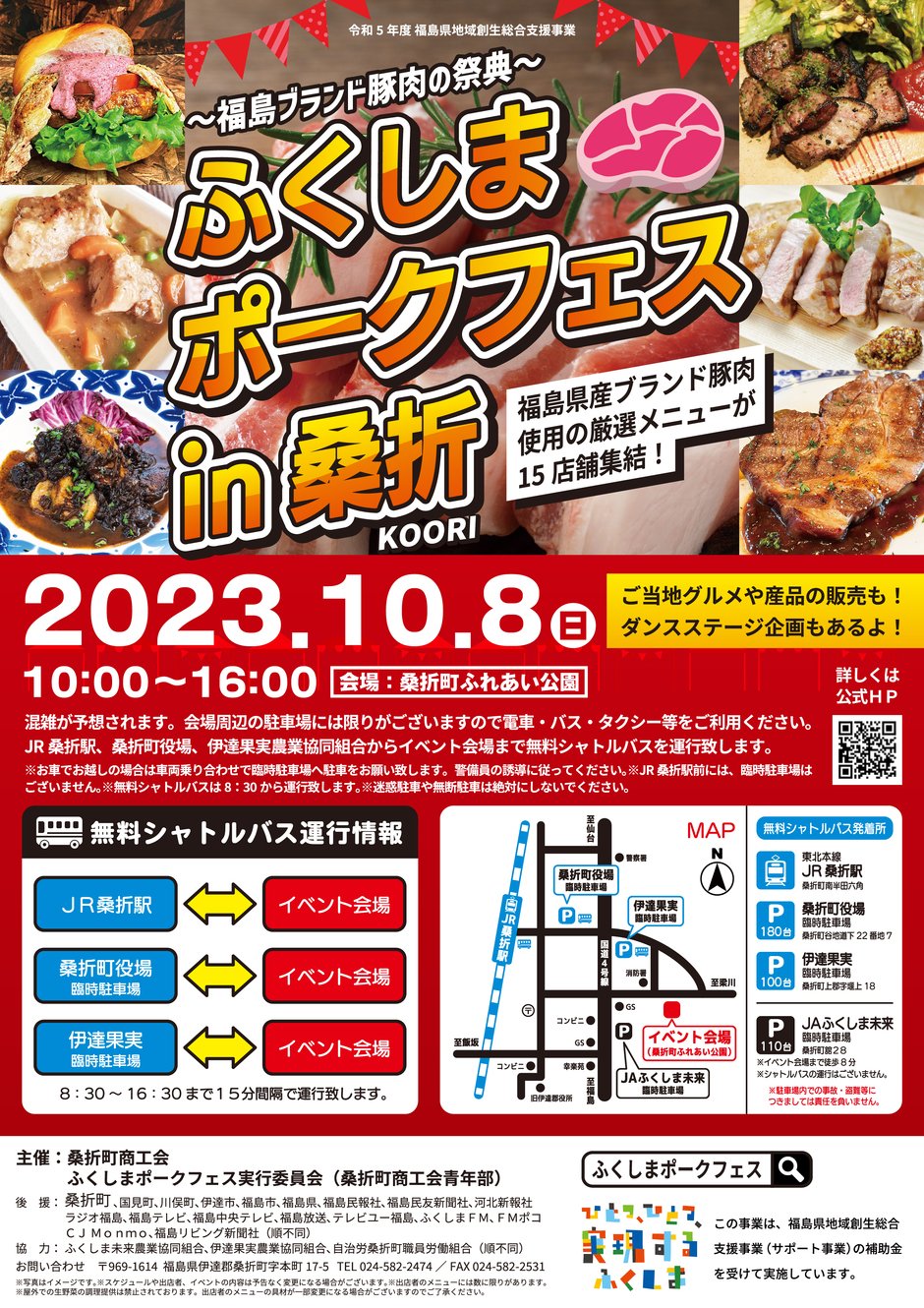 | お問い合わせ | 桑折町商工会(ふくしまポークフェス実行委員会) 〒969-1614 福島県伊達郡桑折町本町17-5 TEL:024-582-2474 |