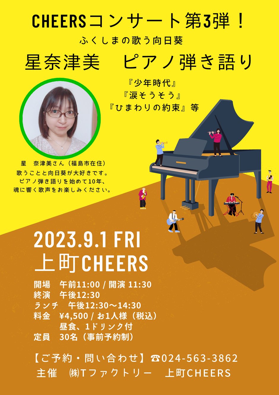 | 関連サイト | https://www.uwamachi-cheers.com/post/9-1-%E3%80%8E%E6%98%9F%E5%A5%88%E6%B4%A5%E7%BE%8E-%E3%83%94%E3%82%A2%E3%83%8E%E5%BC%BE%E3%81%8D%E8%AA%9E%E3%82%8A%E3%80%8F%E9%96%8B%E5%82%AC%EF%BC%81 |