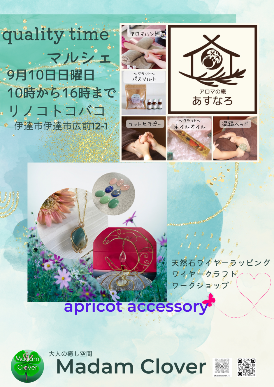 | お問い合わせ | MadamClover メール Madam_clover777@yahoo.co.jp 電話 080-8840-2434 |