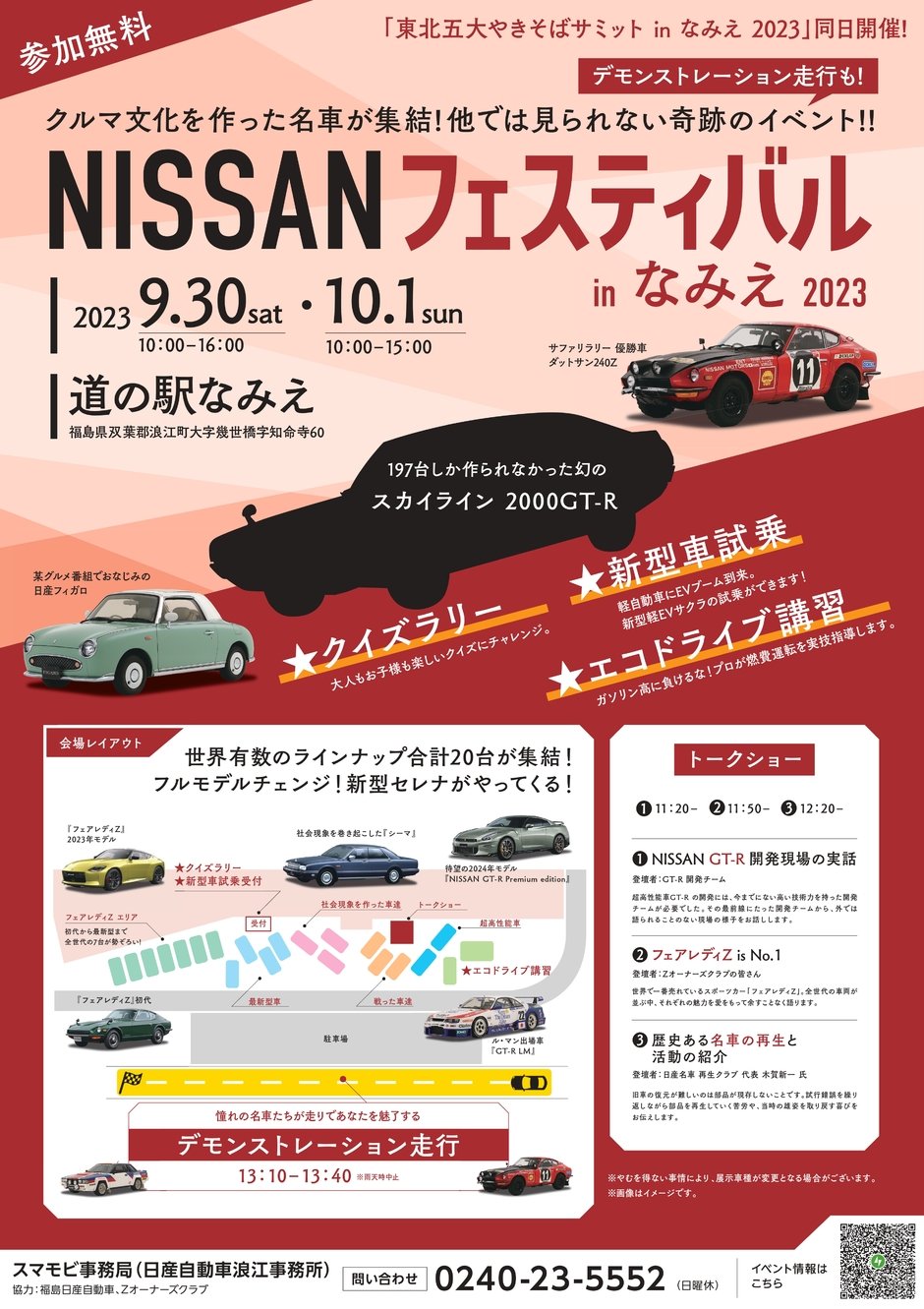 | お問い合わせ | スマモビ事務局(日産自動車浪江事務所) 〒979-1521 福島県双葉郡浪江町大字権現上続町12 朝田ビル 4F 0240-23-5552 |