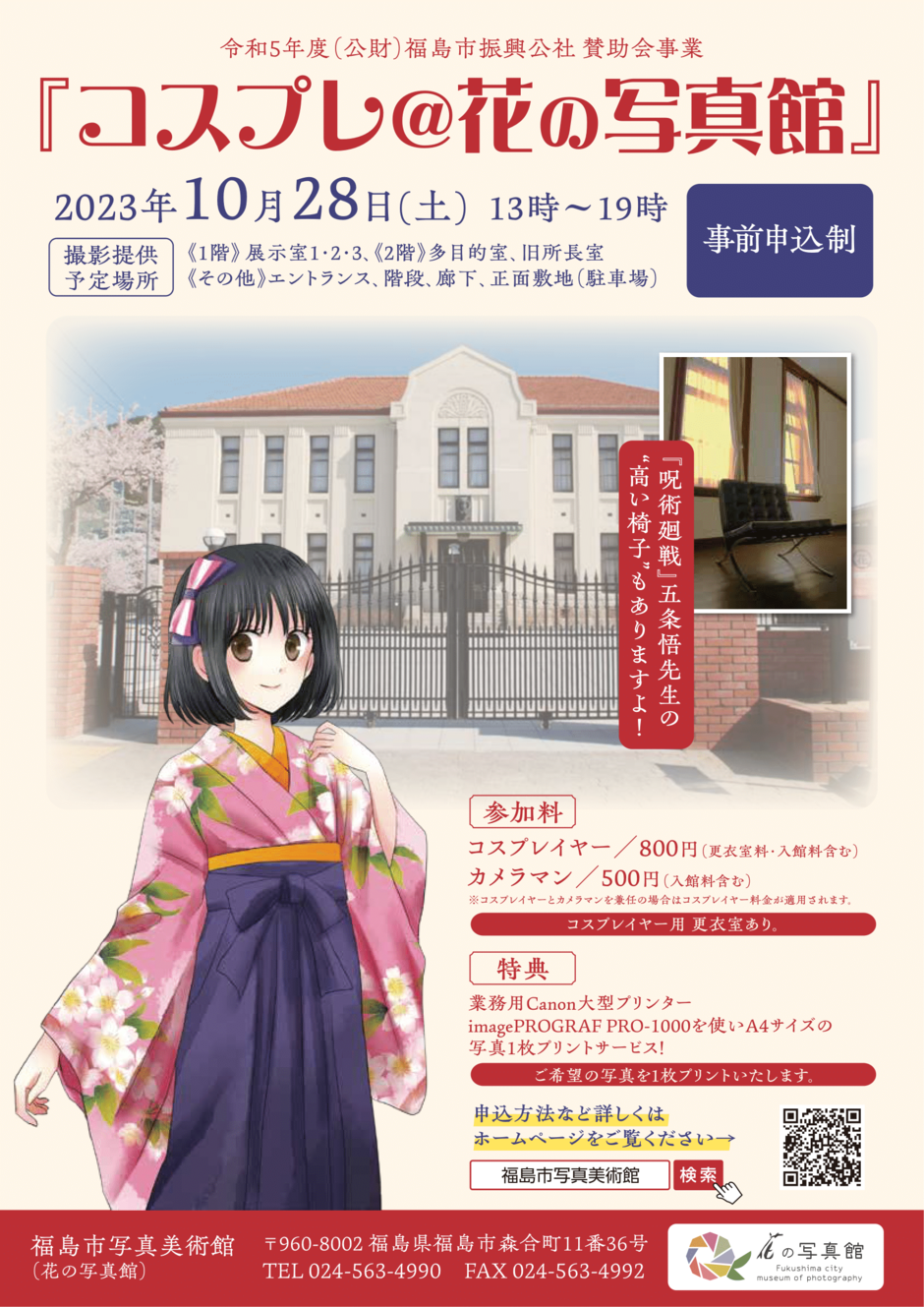 | 関連サイト | https://www.f-shinkoukousha.or.jp/hanano-shashinkan/?event=cosplay2023 |