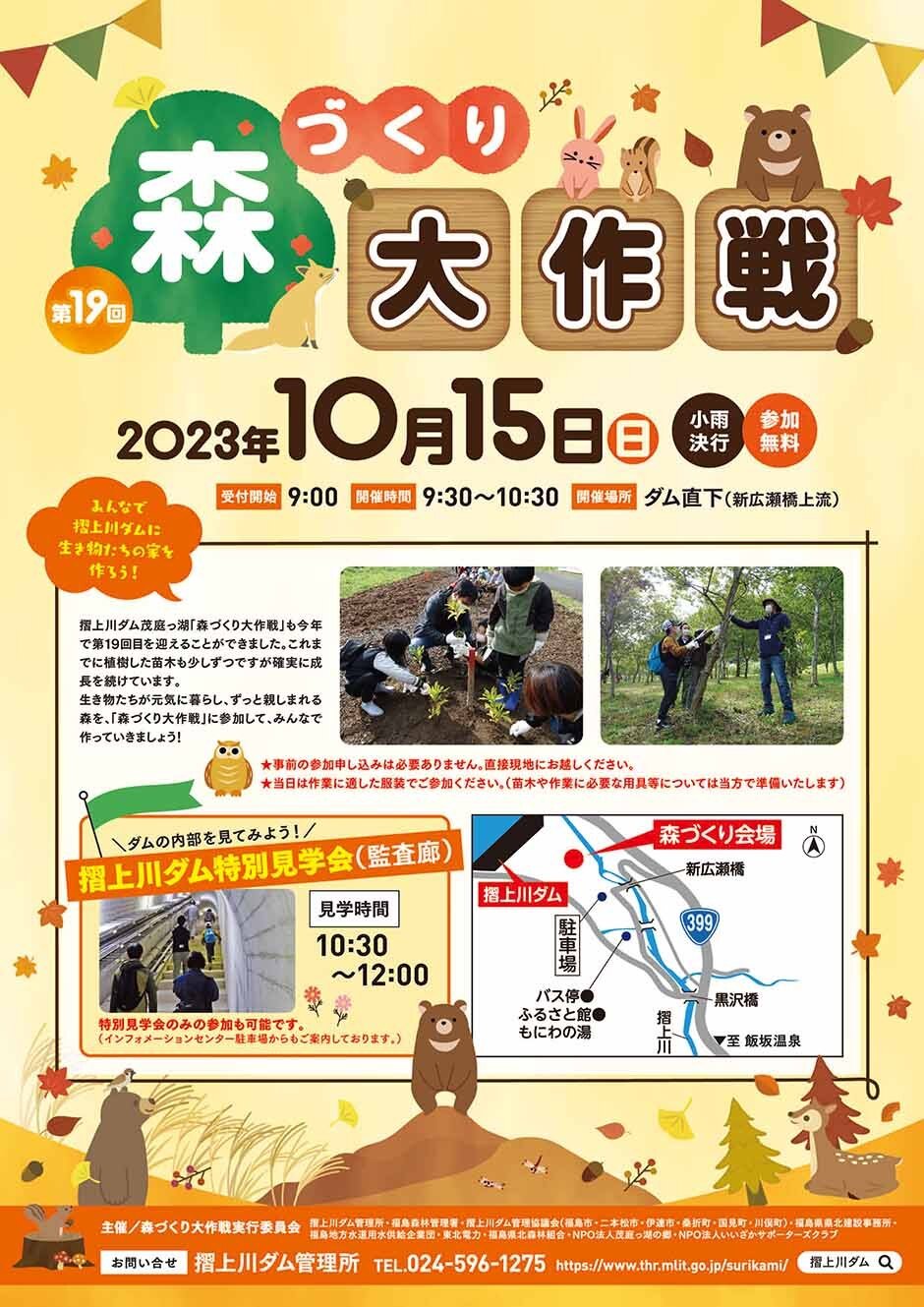| お問い合わせ | ふくしまインフラツーリズム 問い合わせ先: 福島県土木部 まちづくり推進課 〒960-8670 福島県福島市杉妻町2-16 Tel:024-521-7511 摺上川ダム管理所 〒960-0271 福島県福島市飯坂町茂庭字蝉狩野山25 TEL:024-596-1275 E-mail:thr-surikami01@mlit.go.jp |