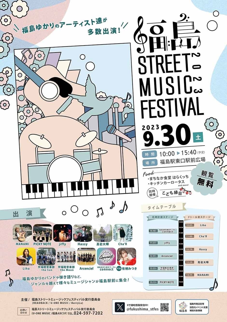 | お問い合わせ | 主催/福島ストリートミュージックフェスティバル実行委員会 福島駅前東口広場 960-8031 福島県福島市栄町1-1 |