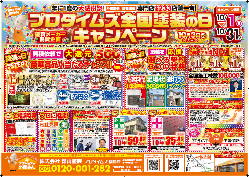 プロタイムズ全国塗装の日キャンペーン🎈【10/1~10/31開催】