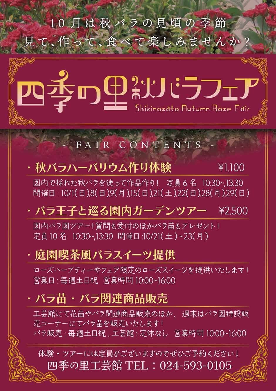 | 参加費 | 秋バラハーバリウム作り体験 1,100円など |