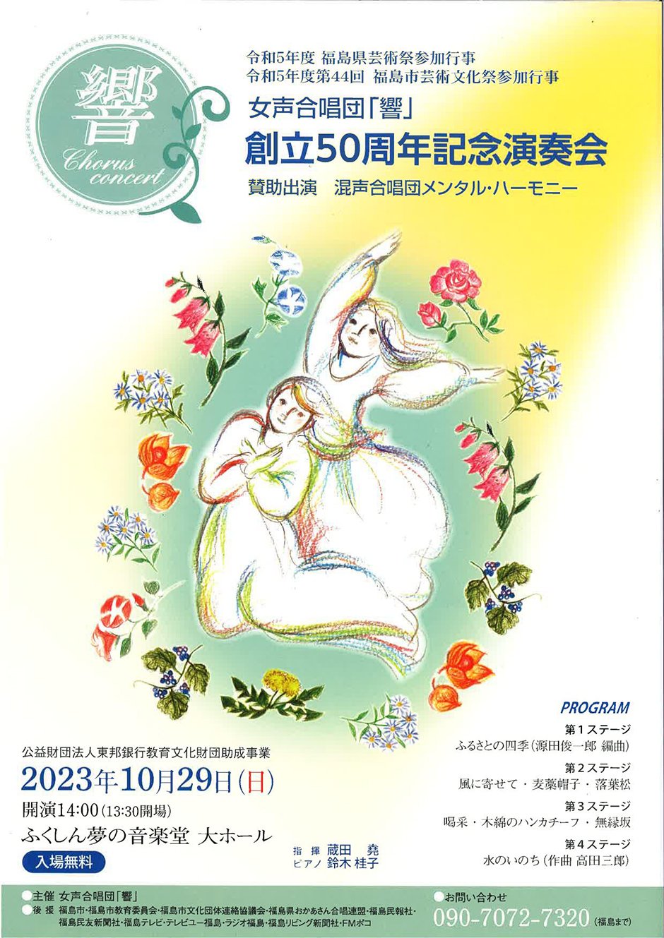 | お問い合わせ | 主催:女声合唱団「響」 問い合せ:090-7072-7320(福島) |