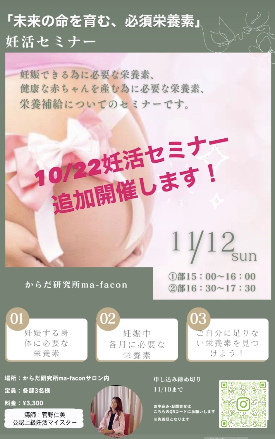 未来の生命を育む必須栄養素*妊活さん、妊婦さんセミナー