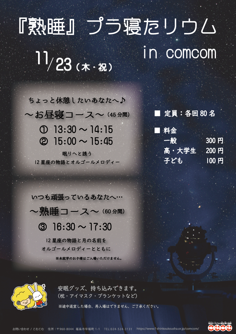 | お問い合わせ | 福島市子どもの夢を育む施設 TEL024-524-3131 |