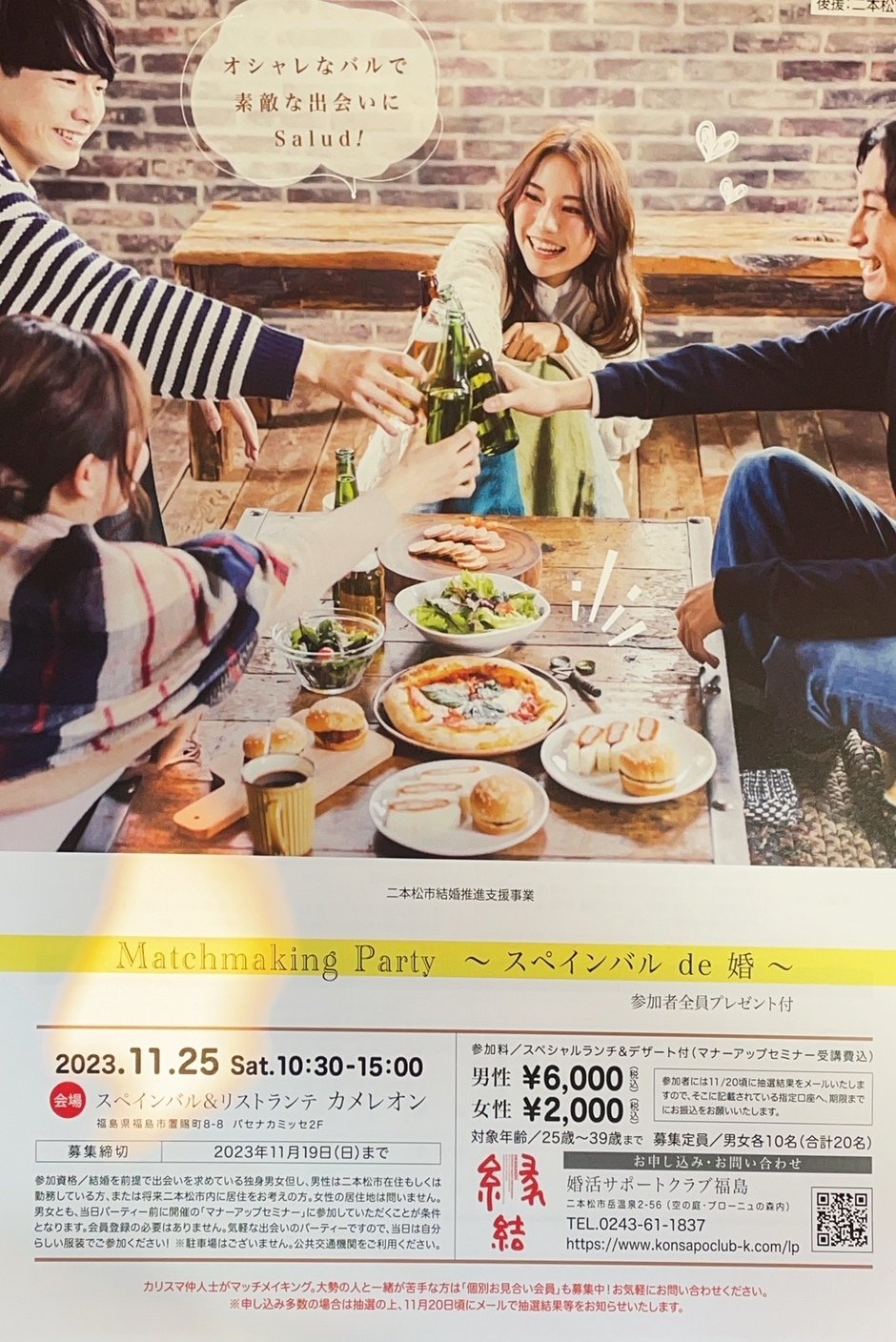 | 参加費 | 男性6000円(税込)女性2000円(税込) |